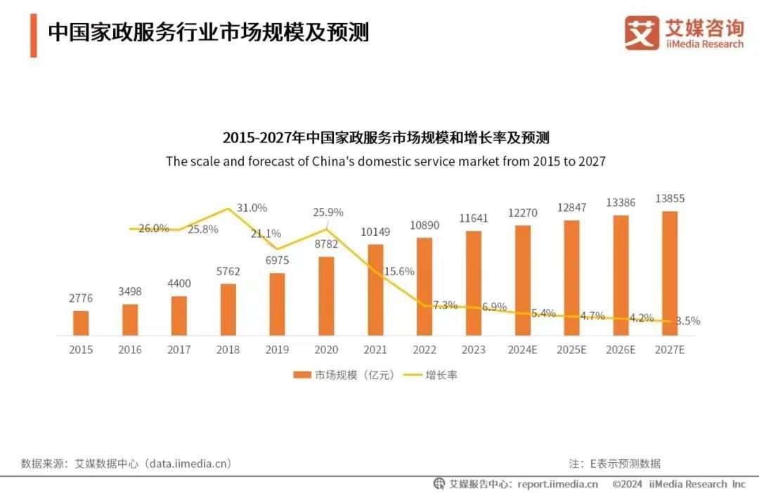 市場規模:預計2026年中國家政服務行業市場規模突破13000億元