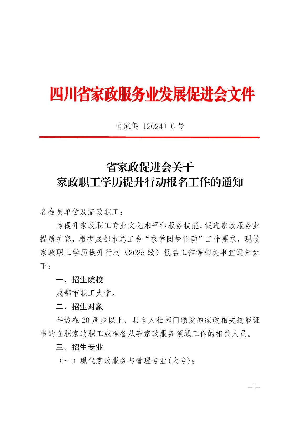四川省家政促進會關于家政職工學歷提升行動報名工作的通知!