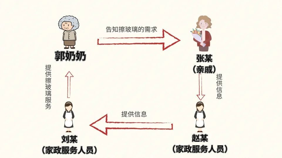 春節(jié)前夕,郭奶奶將過年擦玻璃的需求告訴了親戚張某,經(jīng)張某和家政服務(wù)人員趙某介紹,家政人員劉某前往郭奶奶位于居民樓二樓的家中擦洗玻璃,后從二樓窗戶墜亡。